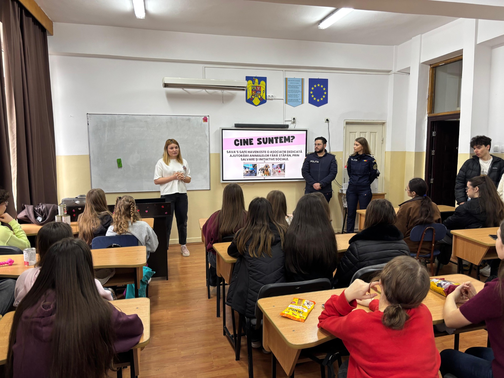 Astăzi am vizitat Școala Gimnazială Nr. 5 Galați, unde am discutat cu elevii despre protecția animalelor, responsabilitate și empatie.